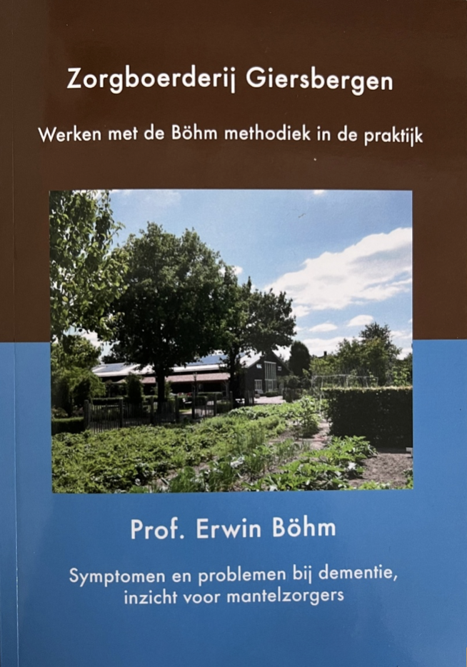 Werken met de Böhm-methodiek op Zorgboerderij Giersbergen is een boekje vol praktische voorbeelden. Hoe werkt het met de methodiek in de praktijk? Wat levert dat op als je er echt mee aan de slag gaat als organisatie met dagbesteding of dagbeleving? Zorgboerderij Giersbergen was de eerste organisatie in Nederland die de methodiek omarmde en ook de eerste organisatie die volledig gecertificeerd werd door de internationale Böhm-organisatie. Dat heeft de organisatie veel gebracht! Werk je met de uitgangspunten van Böhm? Of wil je dat wellicht gaan doen? Dan is dit boekje nog meer de moeite waard! In de tweede helft is Professor Erwin Böhm zelf aan het woord, met zijn typisch lichtvoetige benadering. Hij schrijft op beeldende wijze hoe dementie de omgang tussen zorgvrager en primaire mantelzorger kan compliceren. Het boekje ‘praktisch werken met de Böhm methodiek op Zorgboerderij Giersbergen bevat in totaal 101 bladzijden. Het kost €17,50 inclusief 9% btw of € 16,05 ex btw.